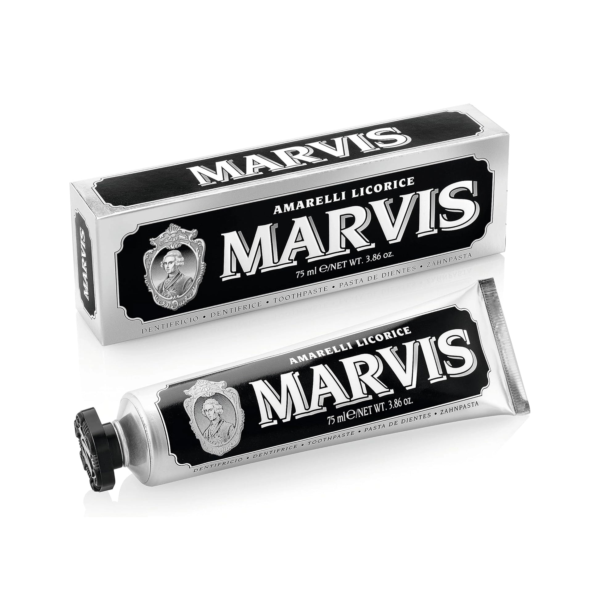 This handsome Liquorice Mint Toothpaste is the result of a collaboration between Marvis and Amarelli, producers of fine Italian liquorice since 1731.