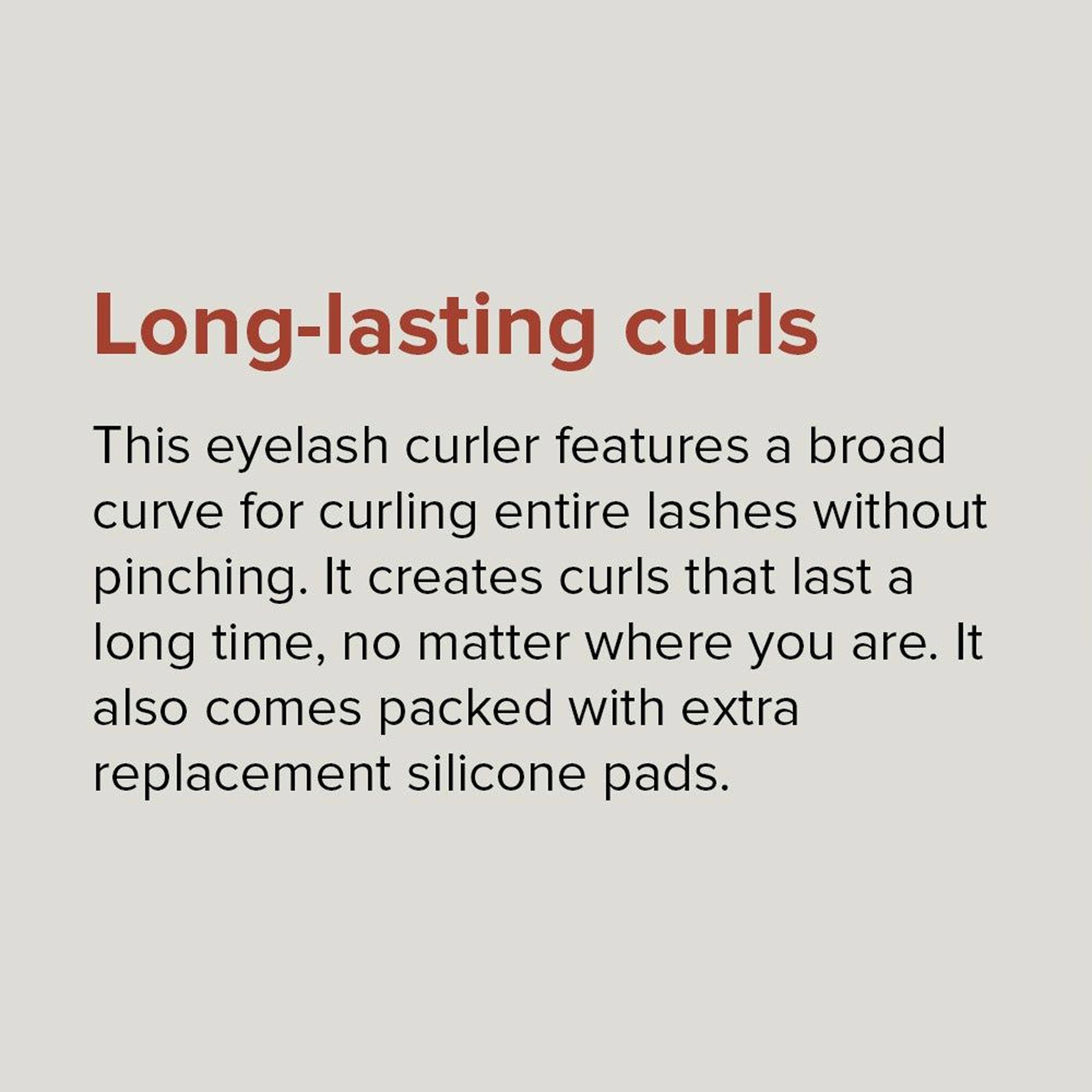 Product description For beautifully lifed and curled eyelash, it has broad curve for curling entire lash without pinching