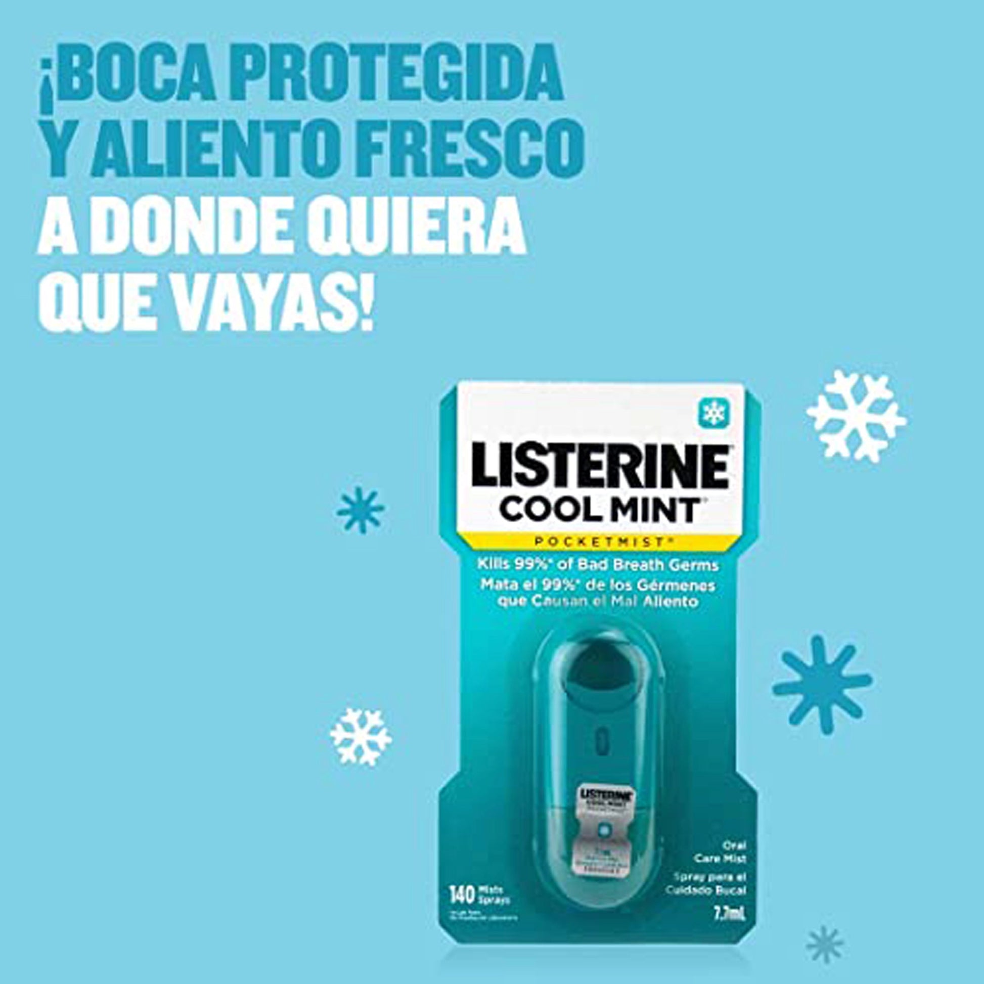 Freshen your breath on the go with this mouth spray in Cool Mint flavor. This non-aerosol oral mist kills 99.9 percent of germs that cause bad breath, according to laboratory tests.